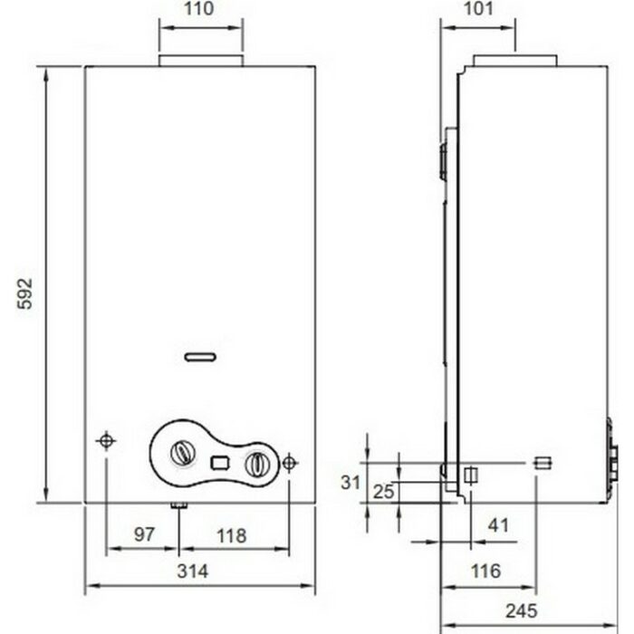 - Диаметр дымовой трубы, мм 110