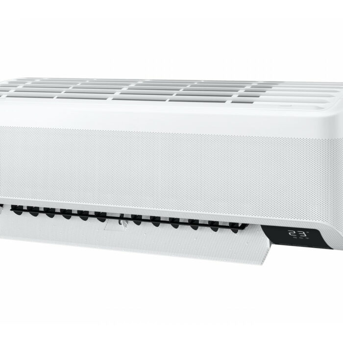 Кондиціонер Samsung  предназначен для использования на площади до 35 м2. Это устройство обладает массой преимуществ, одним из которых стала технология Wind-Free. Ее особенностью стало эффективное поддержание заданного температурного режима и полное отсутствие сквозняков – минуса систем кондиционирования прошлых поколений. Для распределения воздушной массы используют 23 000 перфораций микро диаметра, поэтому охлажденный воздух поступает мягко и равномерно. А устройство при этом экономит до 77% электроэнергии.