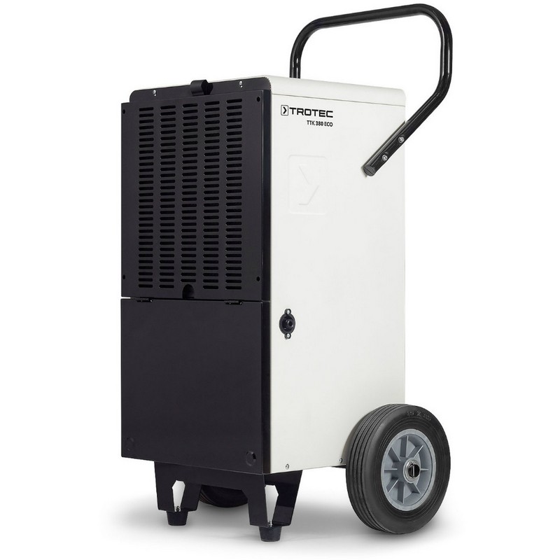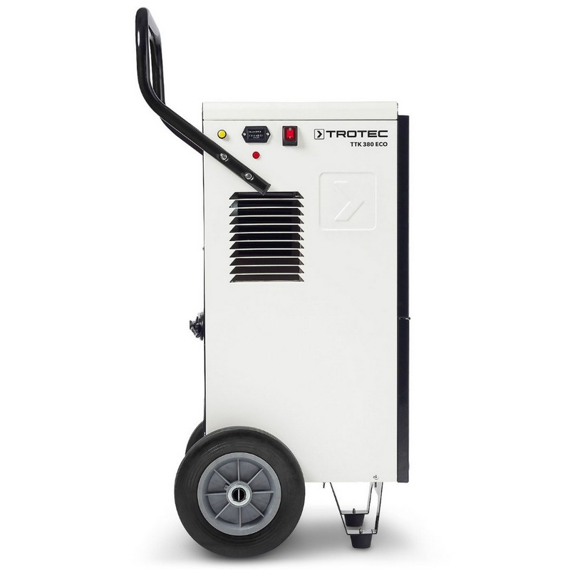 Trotec TTK 380 ECO — це високоефективний конденсаційний осушувач, розроблений для швидкого видалення великої кількості вологи. Модель оснащена лічильником робочих годин, що є критично важливим для орендного бізнесу або професійного обліку витрат енергії на об’єкті. Завдяки потужному вентилятору та просунутій системі розморожування гарячим газом, пристрій зберігає високу ефективність навіть у неопалюваних приміщеннях. Можливість підключення зовнішнього гігростата та дренажного шланга дозволяє використовувати його в автоматичному режимі 24/7 без необхідності постійного нагляду персоналу.