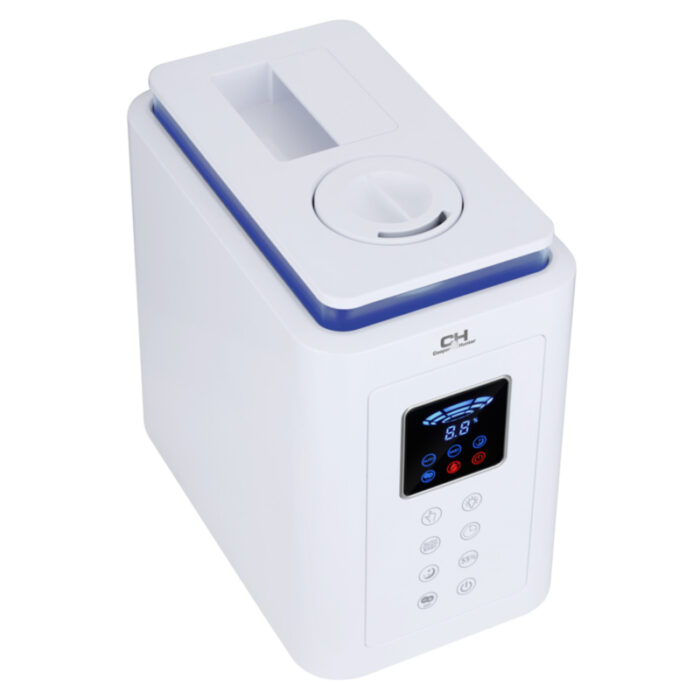 Увлажнитель воздуха Cooper&Hunter CH-3040 MALDIVES-многофункциональный и надежный в строгом белом дизайне с синей подсветкой прибор безупречно впишется в помещение любого типа.Бак для воды имеет достаточно большой объем 4.0 л., что при производительности в 300 мл/ч, в совокупности, дает 13 часов непрерывной работы. С такой производительностью прибор может обслуживать помещение площадью 30-40 кв.м.