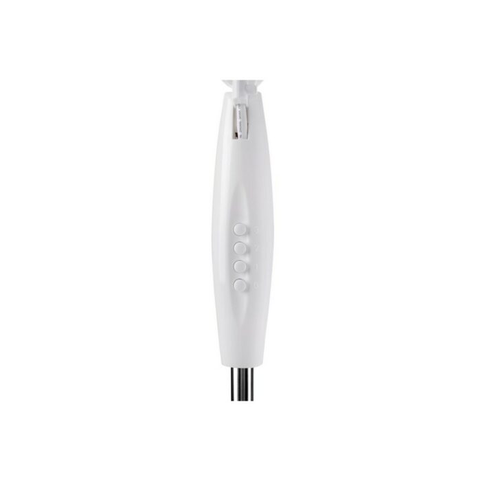 Механическое управление реализовано с помощью четырех клавиш. Мощность вентилятора – 45 Вт, предусмотрено три скорости работы. Вращение обеспечивает равномерное распределение воздушных потоков в помещении.