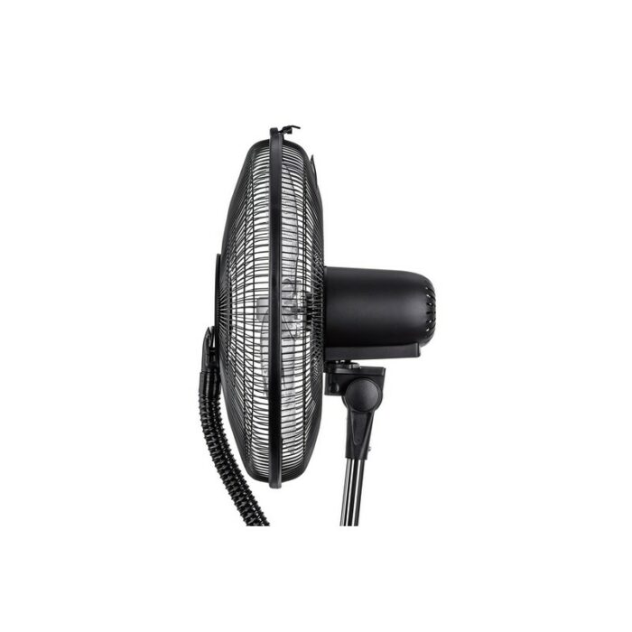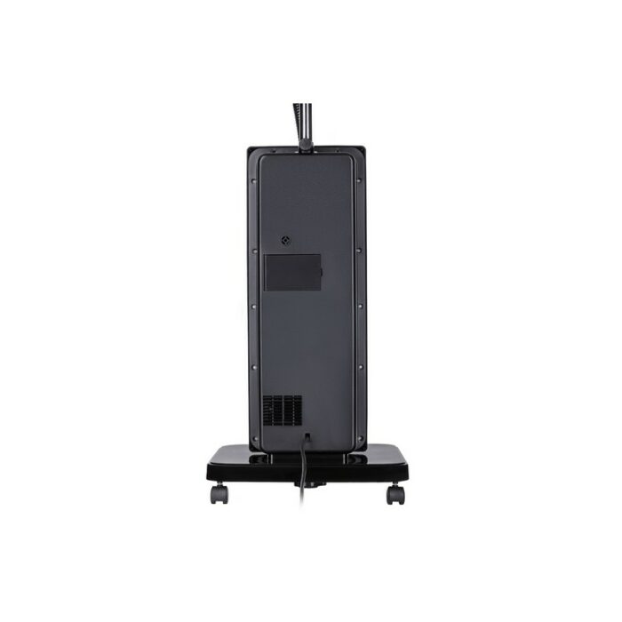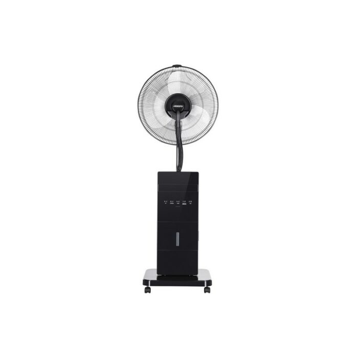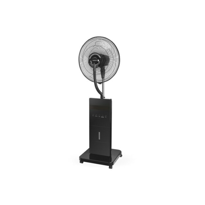 Вентилятор напольный черного цвета с функцией увлажнения, ионизацией и защитой от москитов. Для удобного управления предусмотрен дисплей с цветной индикацией и пульт ДУ. Модель выполнена из надежных, практичных и долговечных материалов, а в качестве подставки используется платформа с колесами.