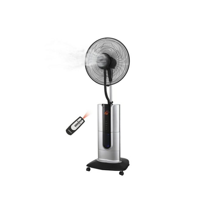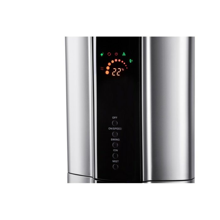 Вентилятор напольный серебристого цвета с функцией увлажнения. Для удобного управления предусмотрен дисплей с цветной индикацией и пульт ДУ. Модель выполнена из надежных, практичных и долговечных материалов, а в качестве подставки используется платформа с колесами.