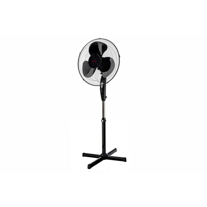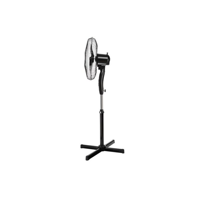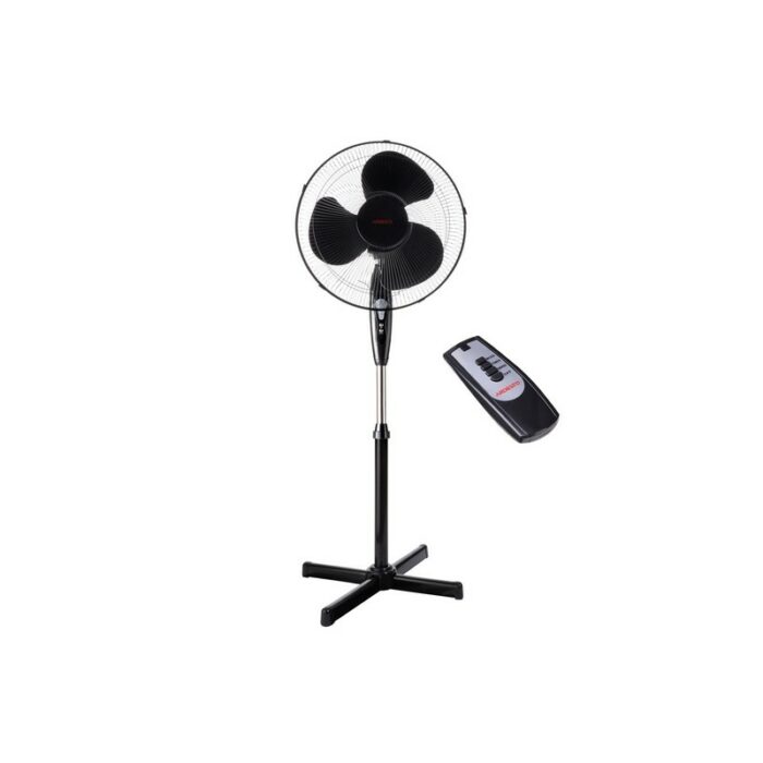 Вентилятор напольный черного цвета с дистанционным управлением и опорой в виде крестовины. Модель выполнена из надежных, практичных и долговечных материалов.