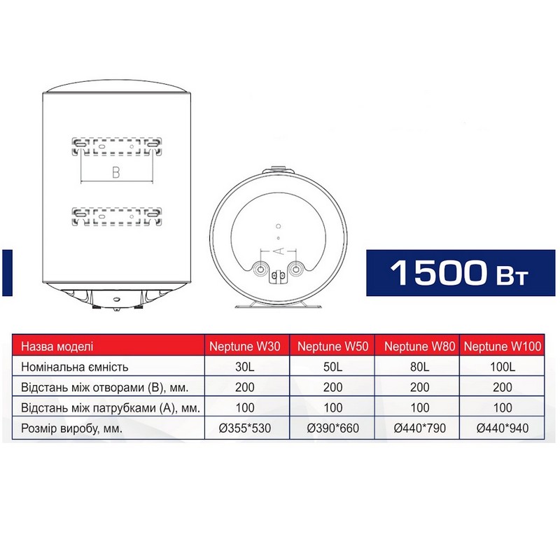 Aquaforce Neptune W50 – це надійний електричний накопичувальний водонагрівач із класичною циліндричною формою, розроблений для забезпечення  гарячої води у побуті.