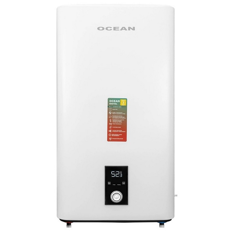 Ocean FLAT RZBF50E-2 ET+DT — це високотехнологічний бойлер, що відповідає сучасним вимогам до енергоефективності та комфорту. Літери ET+DT у назві вказують на наявність електронного термостата (ET) та добового таймера (DT).